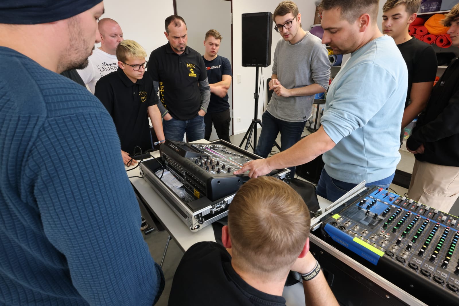 Im zweiten Teil des Seminars wurde die Theorie hinter Mischpulten beleuchtet. Hier lernten die Teilnehmer, wie ein Mischpult aufgebaut ist und welche Möglichkeiten es bietet. Es wurde erläutert, wie die Mischpulte für verschiedene Anwendungen eingesetzt werden können.